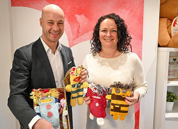 Vizebürgermeister Mag. Martin Hajart besuchte das Teddyhaus Linz und überreichte 200 „Kummerkuschler“ sowie eine Spende an Herzkinder Österreich